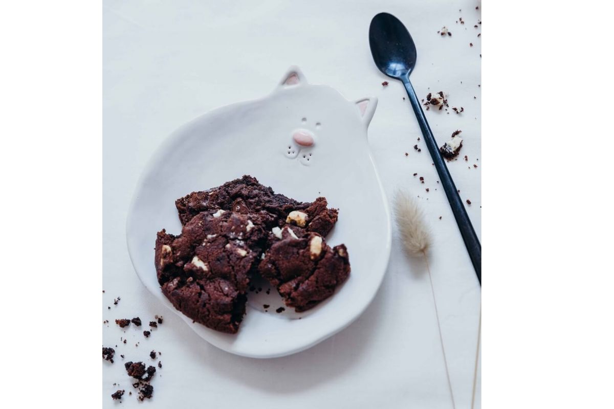 Biały talerzyk deserowy kot - Rękodzieło na prezent - Lamabo Ceramics