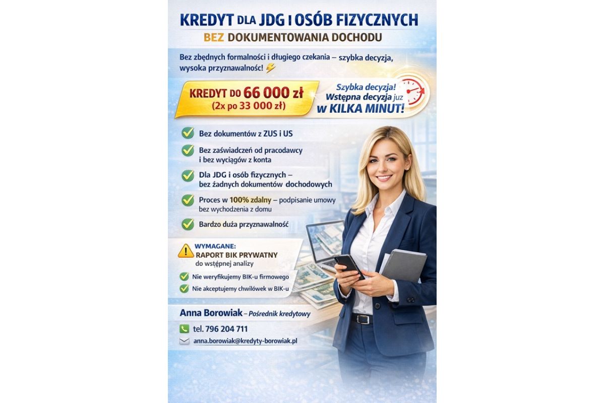 KREDYT DLA JDG I OSÓB FIZYCZNYCH BEZ DOKUMENTOWANIA DOCHODU